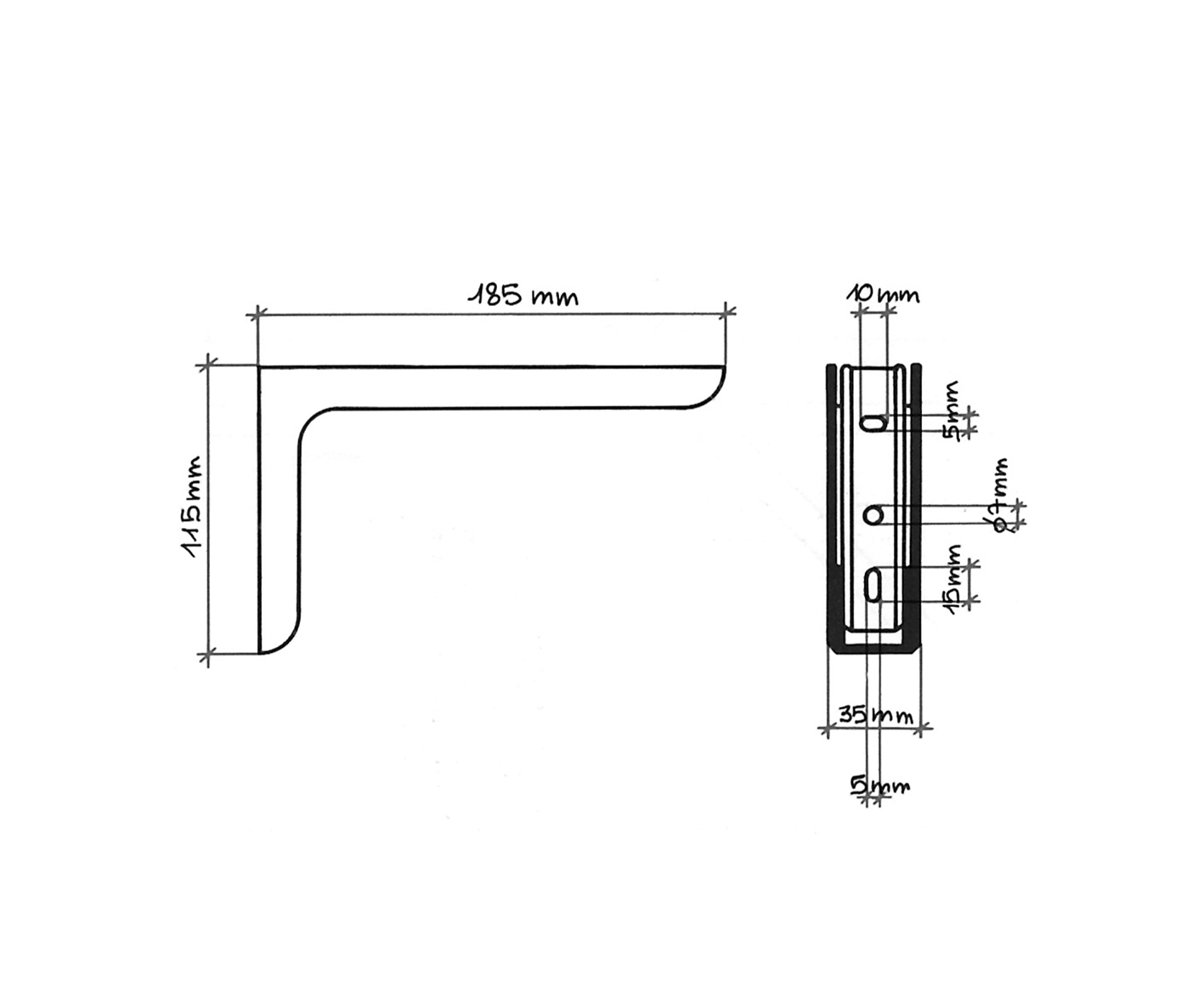 Konzola ocel s krytem PVC pro montáž police na stěnu.
